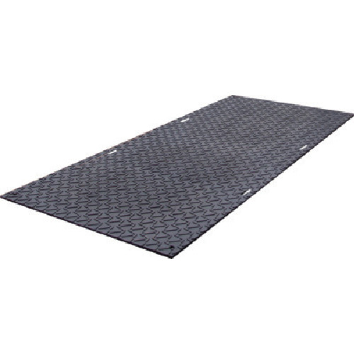 エムエフ(株) 品番:JR005 MF ニューダイコク板 特長重量に耐えるしっかりとした製品ですが、一人で運べる程度の軽量(約40kg)です。巻き込めて、土地の形状に馴染みやすいです。表面は4mmの滑り止めリブ、裏面はリブ無しの平滑面です。クギ打ちが出来き、手動・電動鋸でカットできます。使用時外気温の範囲は-15℃から50℃前後です。ガソリンなどの溶剤による損傷がほとんどありません。物性劣化が