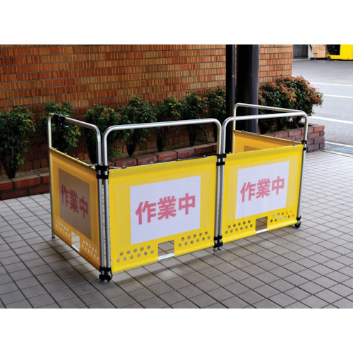 (株)ピカコーポレイション 品番:ANTBP-H4 ピカ 安全柵4面 ポケット付きハーフタイプ 特長取り外し自在なクランプ式により、さまざまな形に組み換え可能です。止め金具により、90度・135度・収納状態で固定できます。用途作業現場と通路の仕切りに。商品スペック仕様・規格全幅×高さ(mm):1512×750(パネル4枚)パネル幅×高さ(mm):382×750色:枠:シルバー、パネル:黄奥行(