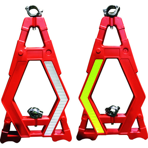 (株)グリーンクロス 品番:1104110610 グリーンクロス シェブロンGバリケード 特長シェブロン型反射シート付で誘導に最適です。広い反射シート面で、夜間の視認性が抜群です。両面に3M製高輝度反射シートを採用しています。重ねて収納可能です。用途道路工事での車線規制に。立入禁止区域の囲いに。車両や歩行者の誘導に。商品スペック仕様・規格3M製高輝度反射シート反射:片面白/片面イエロー単管取付