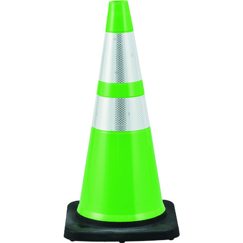 (株)日本緑十字社 品番:116301 緑十字 カラーコーン 緑/白反射シート PVCコーン-GH 高さ:710mm ベース:360mm角 高輝度反射タイプ PVC製 特長夜間での視認性にも非常に優れた高輝度反射シート付きのカラーコーンスタンドです。コーンに約3.7kgの自重があるため、別途ウエイトが無くても少々の風には飛ばされません。柔らかく、耐久性に優れたPVC製です。用途危険箇所、立入制