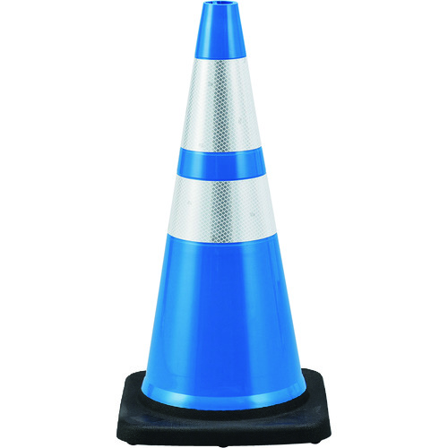 (株)日本緑十字社 品番:116304 緑十字 カラーコーン 青/白反射シート PVCコーン-BLH 高さ:710mm ベース:360mm角 高輝度反射タイプ PVC製 特長夜間での視認性にも非常に優れた高輝度反射シート付きのカラーコーンスタンドです。コーンに約3.7kgの自重があるため、別途ウエイトが無くても少々の風には飛ばされません。柔らかく、耐久性に優れたPVC製です。用途危険箇所、立入