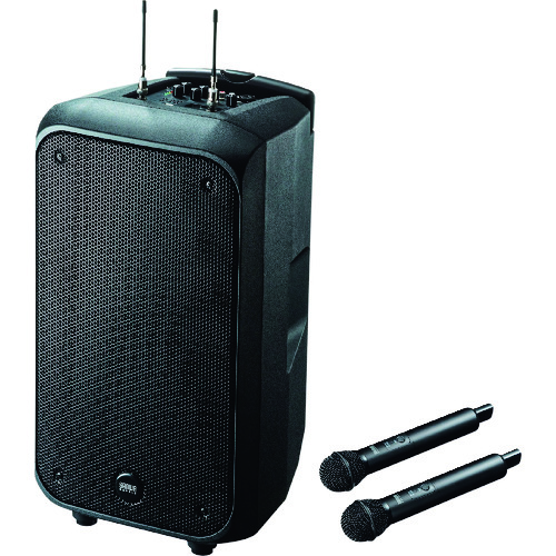 サンワサプライ(株) 品番:MM-SPAMP8 SANWA ワイヤレスマイク付き拡声器スピーカー 特長最大200Wの大出力で広い会議室や体育館などでも使え広範囲に拡声ができる大型の拡声器スピーカーです。ワイヤレスマイク2本(付属)、有線マイク1本(別売)の入力に対応しており自由に移動しながらの同時使用が可能です。移動に便利な大型キャスターと伸縮ハンドルを備え移動が楽に行えます。AC電源駆動と内
