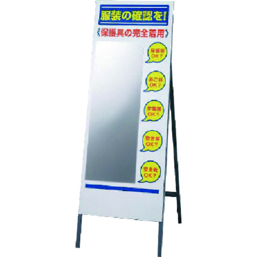 ユニット(株) 品番:308-13 ユニット 服装チェックミラースタンドセット 特長服装チェックミラー付の服装点検看板です。縦看板タイプです。用途工事現場、工場等での服装チェックに。商品スペック仕様・規格枠寸法(mm):1600×555 標識寸法(mm)内容:服装の確認を!(保護具の完全着用)摘要:枠・ミラー付材質標識部・枠部:鉄ミラー部:ステンレス質量・質量単位9kg使用条件-注意事項-セッ