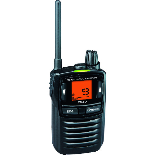 八重洲無線(株) 品番:SR40-B 八重洲無線 特定小電力トランシーバー 特長優れたのIP57相当の防塵・防水性能です。クラス最大の500mWの大音量です。単3アルカリ乾電池3本で約85時間使用ができるロングライフ運用が可能です。収納できる回転式アンテナです。大型ディスプレイ&LEDインジケータです。緊急状態を知らせるエマージェンシ機能搭載です。イヤホン断線機能搭載です。用途工事現場、建設現