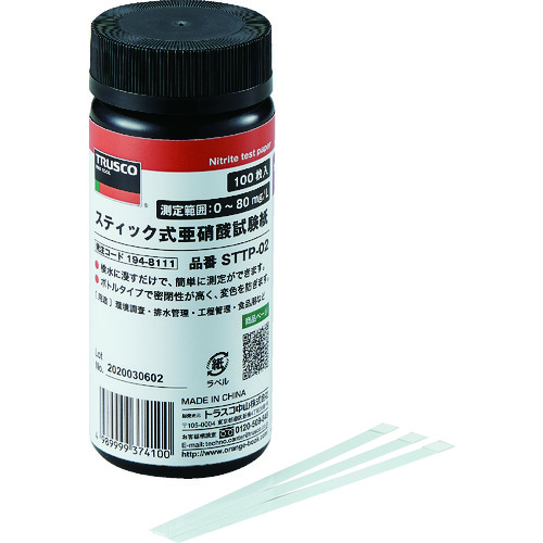 トラスコ中山(株) STTP-02 TRUSCO スティック式亜硝酸試験紙 100枚入