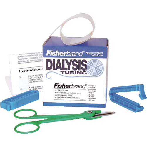 アズワン(株) 品番:2-4170-01 AS 透析チューブ 21-152-10 (1個入) 特長タンパク質やバクテリアをチューブ内に残したまま、水溶液中の低分子化合物を拡散します。ディスペンサーボックスは乾燥剤とともにプラスチック袋にパックされていますので、グリセリンの吸着を防ぎます(T3タイプのみ)。用途分画分子量:T1タイプ/3500、T2タイプ/6000~8000、その他/12000~