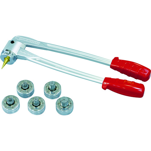 ローデンベルガー 品番:R12317 ローデン エキスパンダパワートルクP5型セット 従来品の半分の力で拡管が可能!特長軽くて耐久性に優れた鍛造アルミ製ボディーです。パワートルク機構で従来品の半分の力で拡管ができます。長い拡管部とリベット(鋲)固定のヘッドが同芯上に広がるため、加工精度が良く、ろう付けに最適なすき間を作ります。テーパーピンはチタンコーティングのため、摩耗に強く長寿命です。用途軟