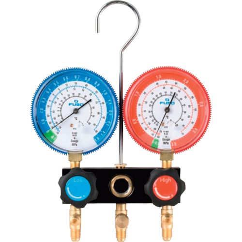 A-Gas Japan(株) 品番:FS-702C-10 FUSO マニホールド 特長ニードルバルブ式なので微調整ができます。脈動振動吸収式ゲージなので針の振れが少なく読みとりやすいゲージです。用途冷凍空調設備の冷媒ガスの充填回収に。商品スペック仕様・規格低圧連成計(MPa):-0.1~1.7高圧連成計(MPa):-0.1~3.5接続口径:1/4フレアゲージ径(mm):80φ材質-質量・質量単