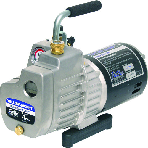 アサダ(株) 品番:Y93549 アサダ 真空ポンプ4CFM 特長新冷媒(HFC)・従来冷媒対応。オイル逆流防止弁内蔵。真空ポンプオイルの逆流を防ぎ、HFC系冷媒機器の損傷を防止。2ステージロータリーポンプで高真空。ガスバラスト付きで、高速真空可能。オイルをきれいに保ちます。真空状態を確認できる真空計付き。オイルレベル・オイルの劣化具合の確認が容易な大きなサイトグラス。オイル交換が容易な大口径