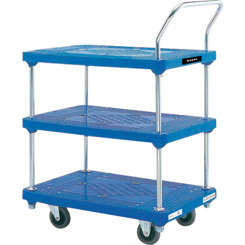 花岡車輛(株) 品番:PL-BT3-AC ダンディ ダンディPシリーズ タイプPL 3段テーブル片ハンドル式 抗ウイルスハンドル仕様 W720×D465 特長独自のリブ構造で、たわみに強く軽量です。軽量化・耐衝撃性・耐腐食性・耐久性のある一体成型です。軽量化と強度のバランスを追い求めた梁の本数です。強度を持たせて、同時に頑丈さを演出する梁の角度です。滑り止めゴムは標準装備です。ハンドルに抗ウイ