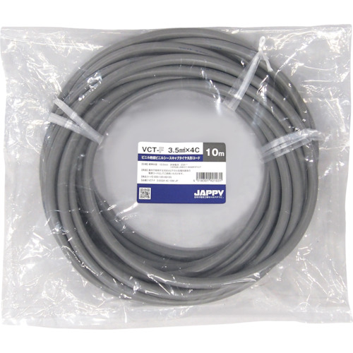 因幡電機産業(株) 品番:VCT-F 5.5SQX 3C 20M JP JAPPY キャブタイヤ丸形コード 特長必要なときに必要な量だけお求めできる短尺サイズです。用途屋内で使用する300V以下の小型電気器具の電源コードとして。商品スペック仕様・規格導体構成:70本/0.32mm導体外径:3.1mm絶縁体標準厚:0.8mmシース標準厚:1.0mmシース色:灰色仕上外径:12.1mm使用温度(