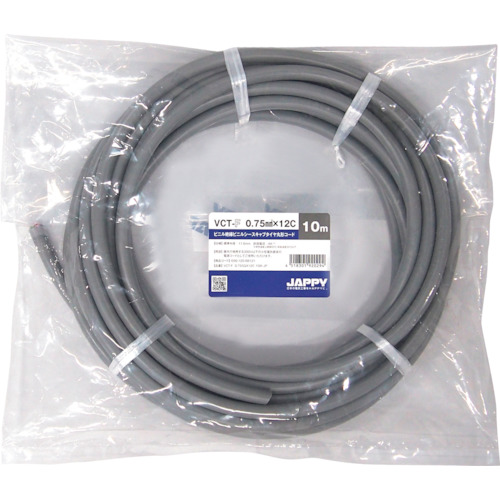 因幡電機産業(株) 品番:VCT-F 0.75SQX12C 20M JP JAPPY キャブタイヤ丸形コード 特長必要なときに必要な量だけお求めできる短尺サイズです。用途屋内で使用する300V以下の小型電気器具の電源コードとして。商品スペック仕様・規格導体構成:30本/0.18mm導体外径:1.1mm絶縁体標準厚:0.6mmシース標準厚:1.0mmシース色:灰色仕上外径:11.6mm使用温度