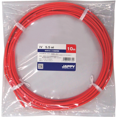 因幡電機産業(株) IV 5.5 SQ RED 15M JP JAPPY ビニル絶縁電線