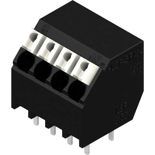 日本ワイドミュラー(株) 品番:1885670000 ワイドミュラー PCB端子台(LSF-SMT) ピッチ3.50mm 4極 プッシュイン式 135度 特長LSF-SMTシリーズは、コンパクトなボディーに差し込むだけで結線できるプッシュイン接続技術を採用した、省配線性に優れた信号用配線に最適なプリント基板用端子台です。耐熱性材料LCPを使用し、リフローに対応するため、機械による自動実装にも対