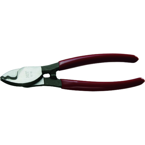 ヒット商事(株) 品番:SC10MT HIT ケーブルカッター 特長特殊鋼の鍛造品で切れ味、耐久性を追求した商品です。用途各種ケーブル線(鋼芯入りケーブル線は除く)の切断に。電話工事のケーブル線の切断に。商品スペック仕様・規格刃部硬度:HRC50~55切断能力((MM2)):IV線22(直径9.2)全長(mm):160材質-質量・質量単位165g使用条件-注意事項-セット内容・付属品-製造国日