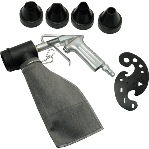 (株)ワールドツール 品番:2004000008194 アストロプロダクツ サンドブラストガン 特長塗装剥がし、下地処理、サビ取り、ガラス工芸品などの装飾などに使用できるサンドブラストガンです。メディアを入れる袋が付いた、負圧式のブラストガンです。ノズルを密着させることで、メディアを回収しながら使用することができる、循環タイプです。形状の異なるノズルが付属しているので、作業用途に合わせて使用で