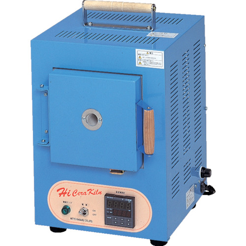日陶科学(株) 品番:NHK-120BS-1 日陶 小型電気炉ハイセラキルン NHK-120BS-1 半自動 特長炉材は100%BSF(生体溶解性ファイバー)を使用しています。(RCF不使用)家庭用電源100Vで最高温度1000℃(通常使用は900℃)まで設定可能です。低温から高温まで安定した温度上昇実現(オートチューニング機能)しました。半自動式P.I.D制御(温度設定及び運転終了時間設定可