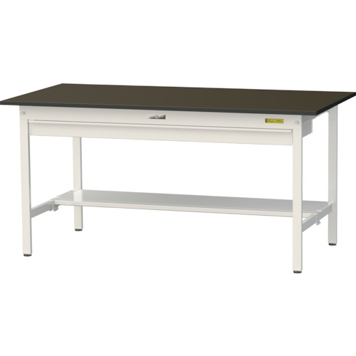 山金工業(株) SLM-1575WT-BRW ヤマテック ワークテーブルLABシリーズ 固定式H740mm ワイド引出し・半面棚板付 指紋レスメラミン天板 W1500×D750