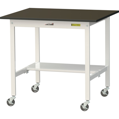 山金工業(株) SLMC-975T-BRW ヤマテック ワークテーブルLABシリーズ 移動式H825mm 半面棚板付 指紋レスメラミン天板 W900×D750
