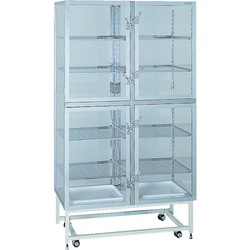 (株)新光化成 品番:BG-1000 新光 大型アクリルデシケーター 特長大型でワイド型のデシケーターです。用途部品等の保管に最適半導体工場、研究室、大学食品工場、原発等商品スペック仕様・規格棚板耐荷重20KG/枚内寸(mm):980×485×1460高さ(mm):1800奥行(mm):525材質透明アクリル質量・質量単位78kg使用条件常温注意事項-セット内容・付属品SUS棚板8枚付製造国日
