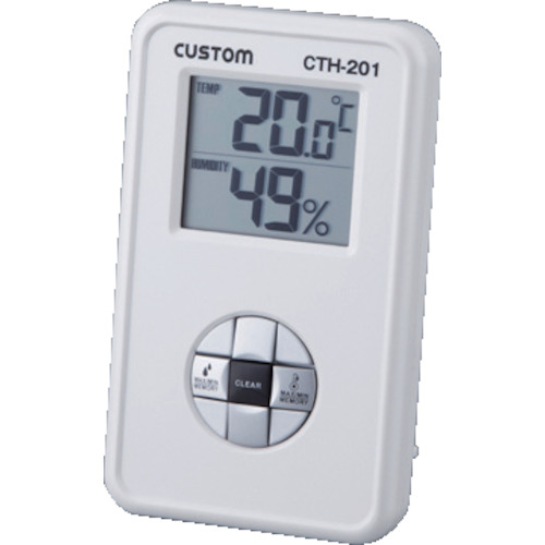 アズワン(株) 品番:1-4061-11 AS デジタル温湿度計 CTH-201 特長最大/最小値メモリ機能付き(温度・湿度)です。卓上スタンド・壁掛け用フック穴付きです。用途精度:温度/±1℃(0~+40℃)・±2℃(その他)、湿度/±5%RH(30~70%RH)・±10%RH(その他)サンプリング:1回/16秒サイズ:72×23×12