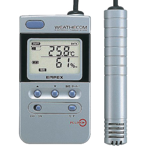 アズワン(株) 品番:2-2740-01 AS 高性能デジタル温度湿度計 EX-501 特長耐結露性に優れたセンサを搭載しています。内蔵CPUがデータを処理し、微小な温度・湿度の変化を正確に表示します。最大4000点のログデータを保存でき、またパソコン接続キット(別売)でデータ管理ができます。用途測定範囲:温度/-30.0~+60.0℃、湿度/20~96%RH分解能:温度/0.1℃、湿度/1%
