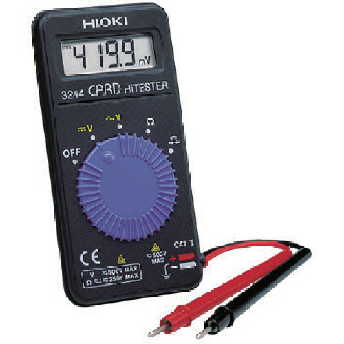 日置電機(株) JAN:4536036000296 HIOKI カードハイテスタ 特長リード先端部分15mmです。抵抗導通レンジは250Vまで過電圧保護します。重さわずか60g、厚さ9.5mmのカードサイズです。CE規格品です。安全規格IEC61010CAT3300V、CAT2600V適合品です。用途電気工事、工業用。商品スペック仕様・規格最大表示:4199カウント直流電圧(V):500交流電