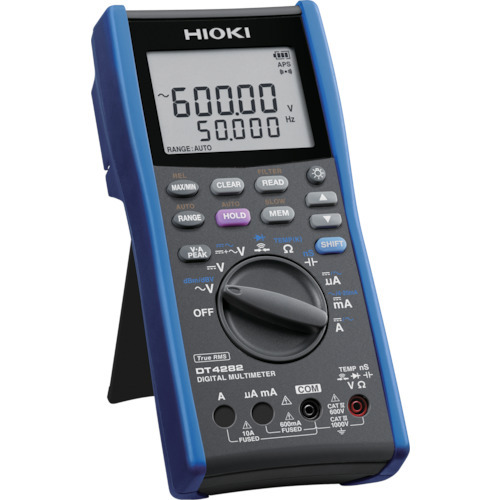 日置電機(株) 品番:DT4282SEISEKI-TRACETUKI HIOKI デジタルマルチメータ DT4282 成績表・トレサ付 特長高確度と高速応答を両立した、端子シャッター搭載の最高級デジタルマルチメーターです。60000カウントの5桁表示、高分解能測定ができます。直流+交流電圧やコンデンサ、ダイオード測定など多数の機能を搭載しています。誤使用を防止する端子シャッター機構を搭載してい