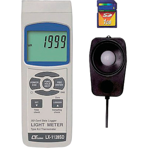 アズワン(株) 品番:1-1449-01 AS データロガー照度計 LX-1128SD 特長SDカードに計測データを保存することができます。測定データをパソコンに取り込んで編集することも可能です。K熱電対センサ(別売)での温度測定もできます。用途分解能:1Lx(0~1999Lx)、10Lx(2000~19990Lx)、100Lx(20000~99900Lx)測定精度:±4%+2d