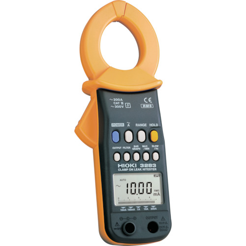 日置電機(株) 品番:3283SEISEKITUKI HIOKI リーククランプメータ 3283 成績表付 特長ひずんだ漏れ電流の改正を可能にするACクランプメータです。高調波成分まで含めて指示する真の実効値型です。高分解能(10mA)で漏れ電流を確実に測定します。200Aまで測定可能で。負荷電流から漏れ電流まで幅広く使用できます。フィルタ機能で商用周波数成分のみを表示します。アナログ出力が可