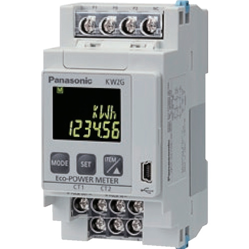 パナソニック デバイスSUNX(株) 品番:AKW2010GB デバイスSUNX エコパワーメータ KW2G 連結タイプ 特長簡易計測機能で、専用センサ(CT)だけで簡易的に電力を計測できます。SDカード対応タイプは自動ロギング機能(SDメモリーカード読出し)があります。増設ユニットの計測データも自動ロギングが可能です。最大7台までの増設ユニットを必要な分だけ増設でき、電源などの配線も不要です