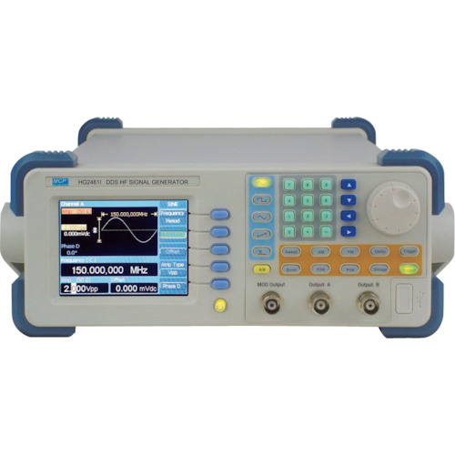 上海MCP社 品番:HG2461VI 上海MCP ファンクションジェネレータ HG2461VI 特長最大600MHzの信号周波数DDSテクノロジーにより,歪みが少なく安定性の高い優れた信号を提供RF出力と関数出力の両方3.5インチQVGAカラーLCDおよびソフトキーSMT製スマートメタルケース1µHz周波数分解能RS232インターフェースおよびUSB,GPIBはオプション多様な変調