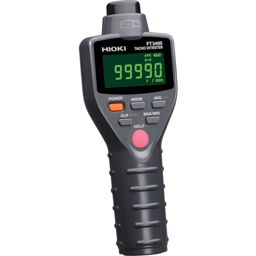 日置電機(株) 品番:FT3405KOUSEISYO-TRACETUKI HIOKI タコハイテスタ FT3405 校正証明書・トレサ付 特長非接触測定検出距離が500mmの安全設計です。1m落下に耐えるドロッププルーフ構造です。防塵構造(IP50)になります。0.5000r/s~99990r/minの広い測定範囲を備えています。接触アダプタ(別売オプションZ5003で接触式としても使用可能で