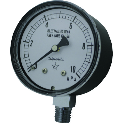 右下精器製造(株) 品番:CA211-112-25KPA 右下 微圧計 特長微圧計はブルドン管圧力計で計測できない低圧力を測定できます。用途主にガスや気体用。商品スペック仕様・規格圧力レンジ(kPa):0~25最小目盛(kPa):0.5呼称:AT*R1/4x60x25kPa接続部サイズ:R1/4精度:±1目盛大きさ(mm):60ケース形状:A材質チャンバー:黄銅株:黄銅質量・質量