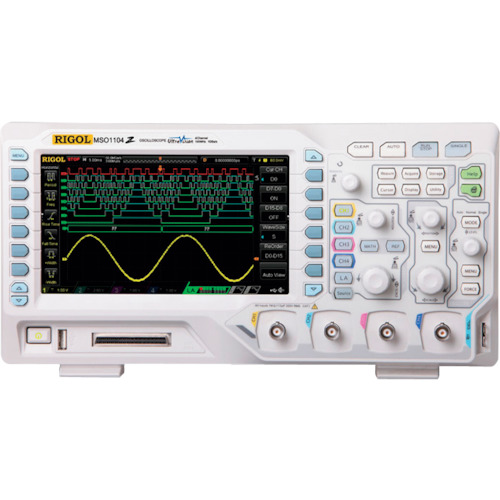ヤマト科学(株) 品番:MSO1104Z-S ヤマト Rigol ミクスド・シグナル・オシロスコープ 100MHZ/4CH、16CHデジタル入力 2ch25MHz任意波形/ファンクションジェネレータ付き 特長低価格ながら帯域100MHz、4チャンネル入力のモデルです。標準的なトリガ(エッジ、スロープ、パルス、ビデオ、)を装備、最大12Mメモリ長の波形取り込み可能です。自動計測機能も35種以上、