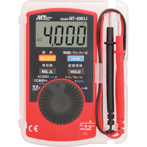 (株)マザーツール 品番:MT-4081J マザーツール カード型マルチメーター 特長軽量・薄型のカード型マルチメーター相対値測定機能搭載静電容量・周波数・デューティー比の測定も可能データホールド機能搭載指示板日本語表示テストリードを収納できる専用ケース付き商品スペック仕様・規格4000カウントオールインワンカード型マルチメーター抵抗:400Ω、4kΩ、40kΩ、400kΩ、4MΩ、40MΩ直