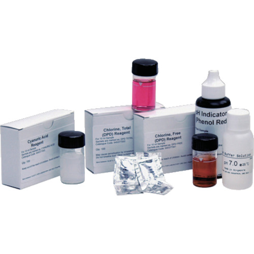 アズワン(株) 品番:1-7727-12 AS 全残留塩素用試薬 94X377002 特長DPD法に基づく吸光光度法による自動測定で、すばやく容易に測定できます。本体・試薬・バイアル瓶がケースにセットされているので、持ち運びに便利です。精度、安定性に優れたDPD粉末試薬を使用しています。用途測定範囲:残留塩素/0~1.99ppm・2.0~6.0ppm、pH/5.9~8.2pH、シアヌル酸/5~
