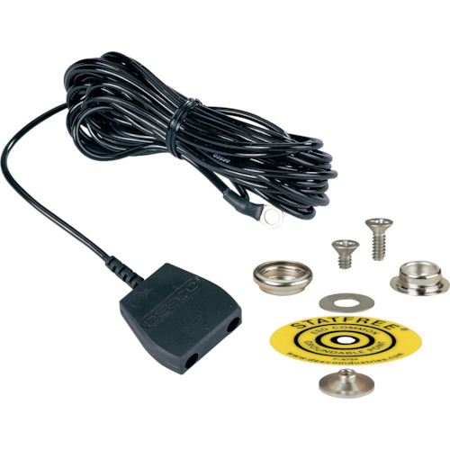 DESCO JAPAN(株) 品番:14213 DESCO コード、セット、共用接地 10 mm 標準端子、1MEG抵抗付き、コード長4.57 m 特長リストストラップや台車用に2個の接地点をご使用できます。グラウンドコード先端にリング端子付きです。アースポイントの設置が簡単です。低い形状です。予備のリング端子付属です。用途半導体工場、電子部品工場、精密電子機器組み立て工場などでの、人体の静電
