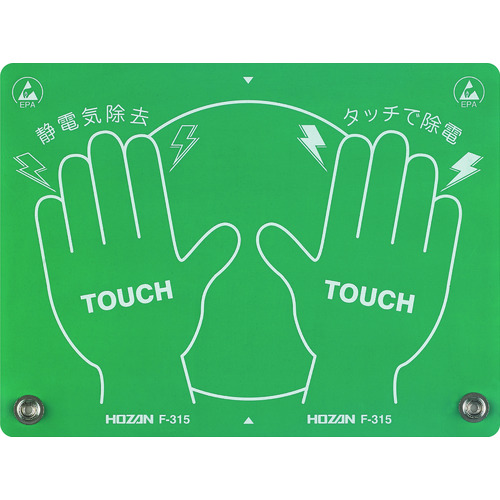 ホーザン(株) 品番:F-315 HOZAN 静電気除去パッド 特長壁面や扉に貼り、触れることで静電気の除去が可能です。半分にカットし、2枚にして使用することも可能です。用途EPA(ESD保護区域)の入り口に設置することで静電気対策の意識付けに。商品スペック仕様・規格フタル酸系4物質を含むRoHS規制10物質に対応ESD管理値:Rp≦1×10(の8乗)Ω色:グリーン幅(mm):180長さ(mm