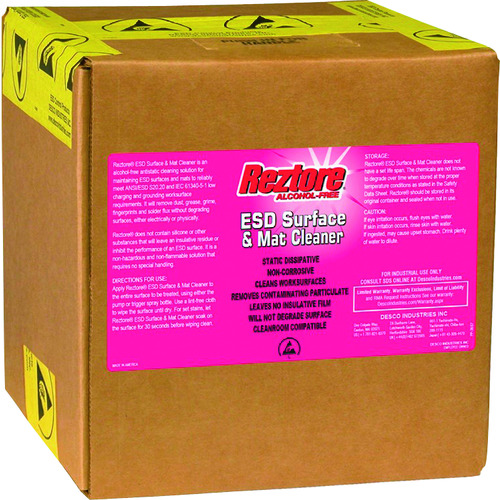 DESCO JAPAN(株) 品番:10448 DESCO 帯電防止クリーナー、作業台表面&マット、9.5リットル入り(補充用) 特長シリコンは含まず、絶縁性残留物を残しません。ESD対策マットや他の表面から汚れや油脂、垢、指紋、ハンダ溶剤、他の残留物等を取り除きます。本製品はマットの寿命を延ばし電気特性を保ち静電気除去効果を持続します。アルコールを含んだクリーナーを過度に使用すると、マット(