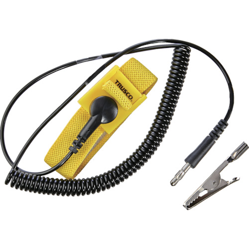 トラスコ中山(株) 品番:WS-A-MS TRUSCO リストストラップ コード有効長約1.8m 特長柔軟性がありフィット感が良いです。肌に接触する部分に金属を使用していないので、金属アレルギーを起こしにくいように配慮しています。用途電子機器・精密機器組立作業での静電気除去。商品スペック仕様・規格バナナプラグ、ワニ口クリップ付1MΩ抵抗内蔵PU製コードバンド色:黄、ケーブル色:黒コード有効長(