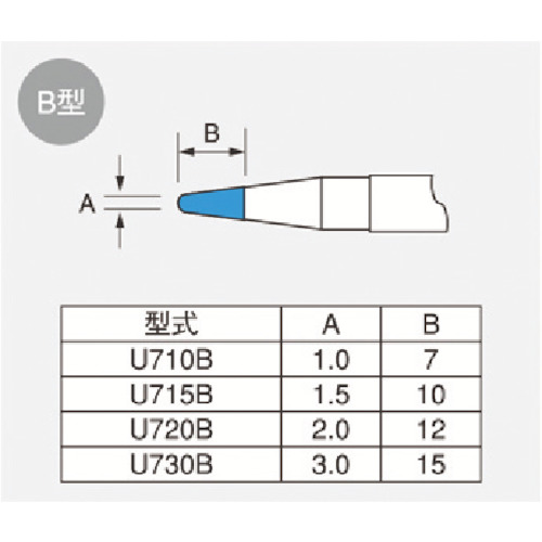 (株)ジャパンユニックス 品番:U715B ユニコン 107L108L用 特長厚メッキ仕様で比較的長寿命です。コテ先表面に硬質クロムメッキ処理と黒色クロム処理を施しており、はんだぬれ面以外へのはんだ浸食を防ぎます。コテ先体積が大きく蓄熱性を持ち、はんだ付け時の温度降下を防ぎます。商品スペック仕様・規格コテ先名称:B型材質-質量・質量単位17g使用条件-注意事項北海道運賃別途セット内容・付属品-