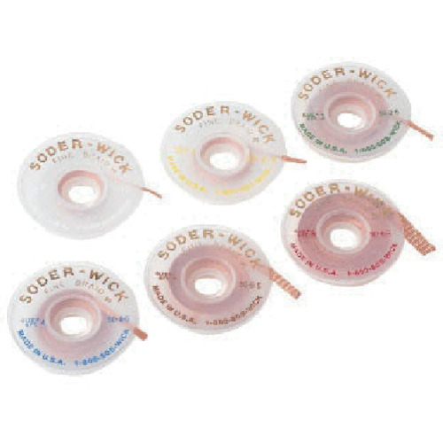 サンハヤト(株) 品番:SW#1 サンハヤト ソルダーウィック SW#1 特長銅の撚り線に純水ホワイト・フラックスを染み込ませてあるので、残渣がほとんどなく洗浄等の後処理は不要です。ワイヤの熱伝導率が良く低い温度で吸い取れますので、プリント基板を痛めません。新しい撚り方を採用しておりますので、より多くのハンダを吸い取ることができます。用途1.5mm以下のパッドのハンダ除去作業に商品スペック仕様
