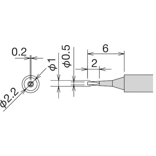 太洋電機産業(株) 品番:RX-81HRT-0.5D グット 替こて先 0.5D型 RX-812AS/802AS 用途微細はんだ付けに最適なφ2.9の極細こて先。商品スペック仕様・規格消費電力:36W品名:替えこて先コテ先名称:W0.5mm適合機種:RX-81GAS、RX-80GAS、RX-85GASコテ先径(mm):φ2.9材質-質量・質量単位5g使用条件-注意事項-セット内容・付属品-製造
