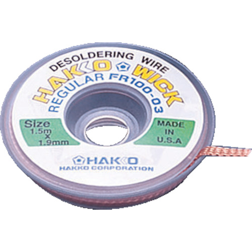 白光(株) 品番:FR100-02 白光 ハッコーウィック レギュラー 1.5MX1.4mm 特長スタンダード(ロジンタイプ)のフラックス入りです。用途スルーホールのはんだ除去。ブリッジの除去。商品スペック仕様・規格幅(mm):1.4長さ(m):1.5材質-質量・質量単位5g使用条件-注意事項-セット内容・付属品-製造国アメリカ小箱入数小箱入数とは、発注単位の商品を小箱に収納した状態の数量です