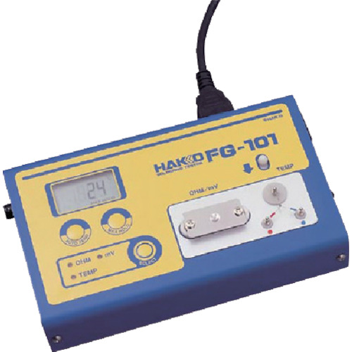 白光(株) 品番:FG101-02 白光 ハッコーFG-101 100V 2極接地P 校正証明書付 特長はんだこてのこて先温度、リーク電圧・アース抵抗が簡単、確実に測定できます。校正証明書、検査成績書、トレーサビリティ体系図付です。用途ステーションタイプのはんだこてを日常管理できるはんだこてテスターに。はんだこての管理に。こて先温度・リーク電圧・アース間抵抗を測定。商品スペック仕様・規格測定温