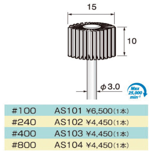 アルゴファイルジャパン(株) 品番:AS103 アルゴファイル AS103 特長ダイヤモンド砥粒を電着した特殊研磨布を放射状に束ねたサンダーです石材、セラミック、ガラス等の研削に適しています商品スペック仕様・規格#400φ15x10 3mm軸材質-質量・質量単位5g使用条件-注意事項-セット内容・付属品-製造国日本小箱入数小箱入数とは、発注単位の商品を小箱に収納した状態の数量です。1本大箱入数