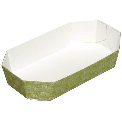 大黒工業(株) 品番:31145 大黒 テーパートレー AT-1 竹柄 特長強度のある紙を使ったトレーです。食品直置きは不可です。用途皮に覆われた果物の容器として。敷き紙を用いて、食品トレーとして。商品スペック仕様・規格185×105×35材質マイクロ段ボール質量・質量単位700g使用条件-注意事項-セット内容・付属品-製造国日本小箱入数小箱入数とは、発注単位の商品を小箱に収納した状態の数量で