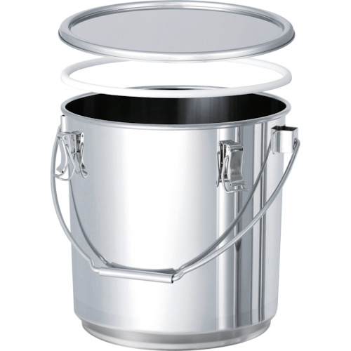 日東金属工業(株) 品番:TP-CTB-STA-PTFE-24 日東 PTFEパッキン付テーパー型積み重ね式吊下げ容器 10L 特長溶剤に強く、空容器の時も積み重ねができるクリップ式容器です。底自体に段を付けることで積み重ね(スタッキング)可能にしました。ゴムパッキンを侵す溶剤が保存できる耐薬品性に優れたステンレス容器です。PTFEパッキンは汚れにくく、汚れが落ちやすいので洗浄が簡単です。内容