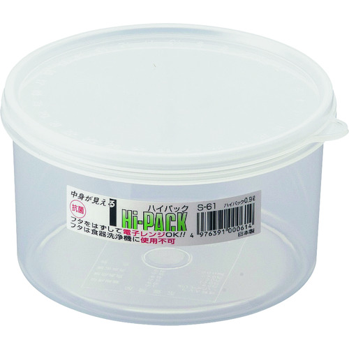 遠藤商事(株) 品番:AHI05061 TKG エンテック ハイパック 丸型 S-61 特長ハイパックサイズが豊富で用途が広い、便利な保存容器ハイパックです。材質:本体ポリプロピレン本蓋ポリエチレン耐熱温度:120℃耐冷温度-20℃※抗菌※電子レンジ対応(フタをはずして電子レンジでご使用できます。)商品スペック仕様・規格メーカー品番:S-61直径×高さ:140×80容量:900cc材質本体:ホ